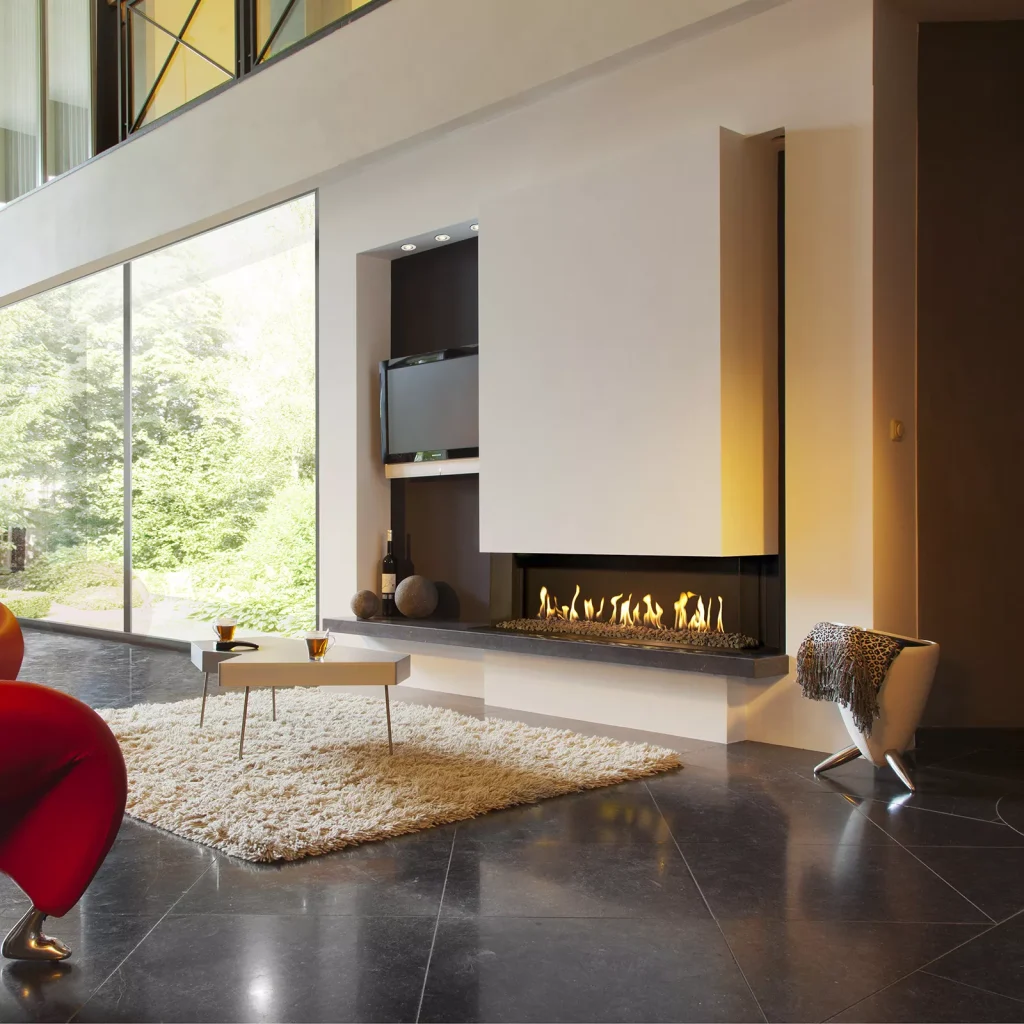 L’insert gaz S1100/370 3 vitres offre une vision panoramique du feu sur trois faces, idéale pour structurer et sublimer votre intérieur.