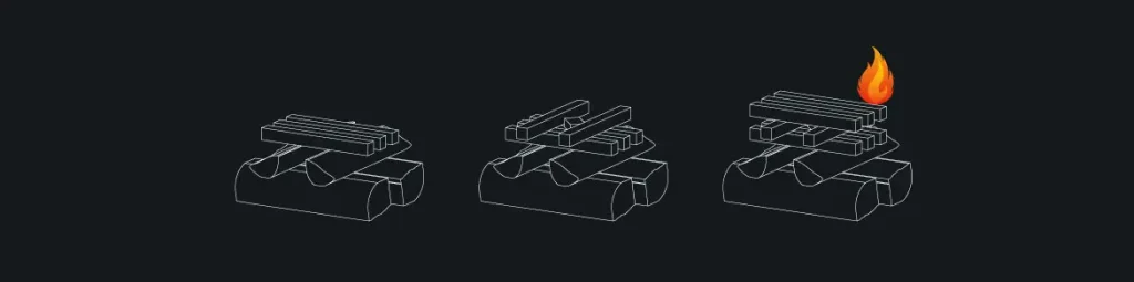 Ajoutez 2 ou 3 couches de bois d’allumage sur les bûches de bois, dans un sens et dans l’autre. La circulation de l’air est importante. Donc, veillez à laisser environ 1 cm entre chaque bûche. Le bois d’allumage ne doit pas être trop gros.