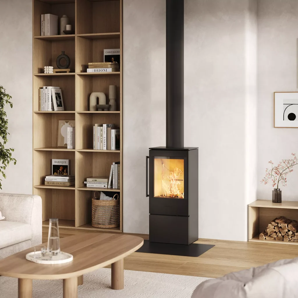 Découvrez le poêle à bois HWAM 5240, un modèle qui associe design vertical élégant et encombrement réduit, idéal pour s’intégrer facilement dans tous les types d’intérieurs. Sa silhouette élancée optimise l’espace tout en mettant en valeur la beauté du feu.