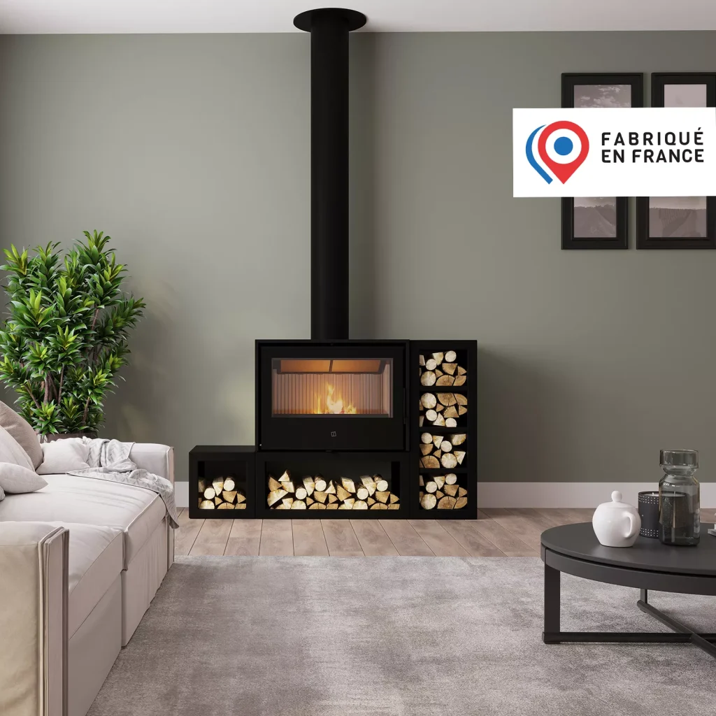 Polyvalent, il se décline en plusieurs configurations afin de s’adapter à votre projet : version suspendue, installation sur banquette en bois ou en métal, ou encore accompagné d’un bûcher. Cette modularité permet de composer un ensemble esthétique et fonctionnel, parfaitement intégré à votre intérieur.