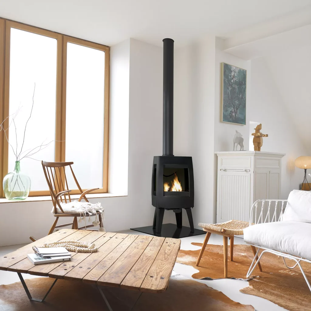 Équipé de trois vitres, le poêle Émeraude offre une vision panoramique des flammes, permettant de profiter du spectacle du feu sous plusieurs angles et de créer une ambiance chaleureuse et conviviale dans la pièce de vie.