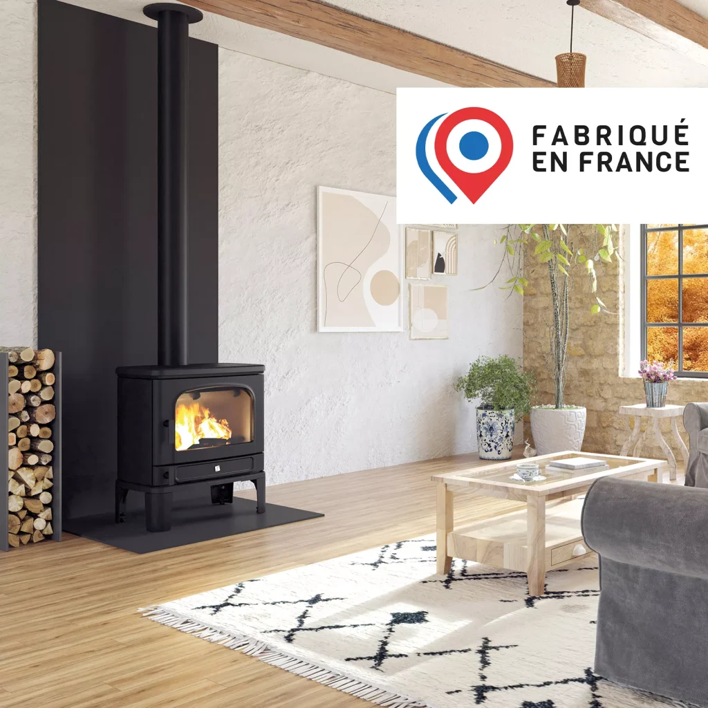 Le poêle Grenat associe la robustesse de la fonte à un design contemporain aux lignes élégantes. Fabriqué en fonte 100 % française et assemblé en Auvergne, il offre une puissance de 6 kW pour une chaleur stable et durable. Grâce à sa double combustion et sa porte hermétique, il garantit un rendement élevé et une combustion optimisée.