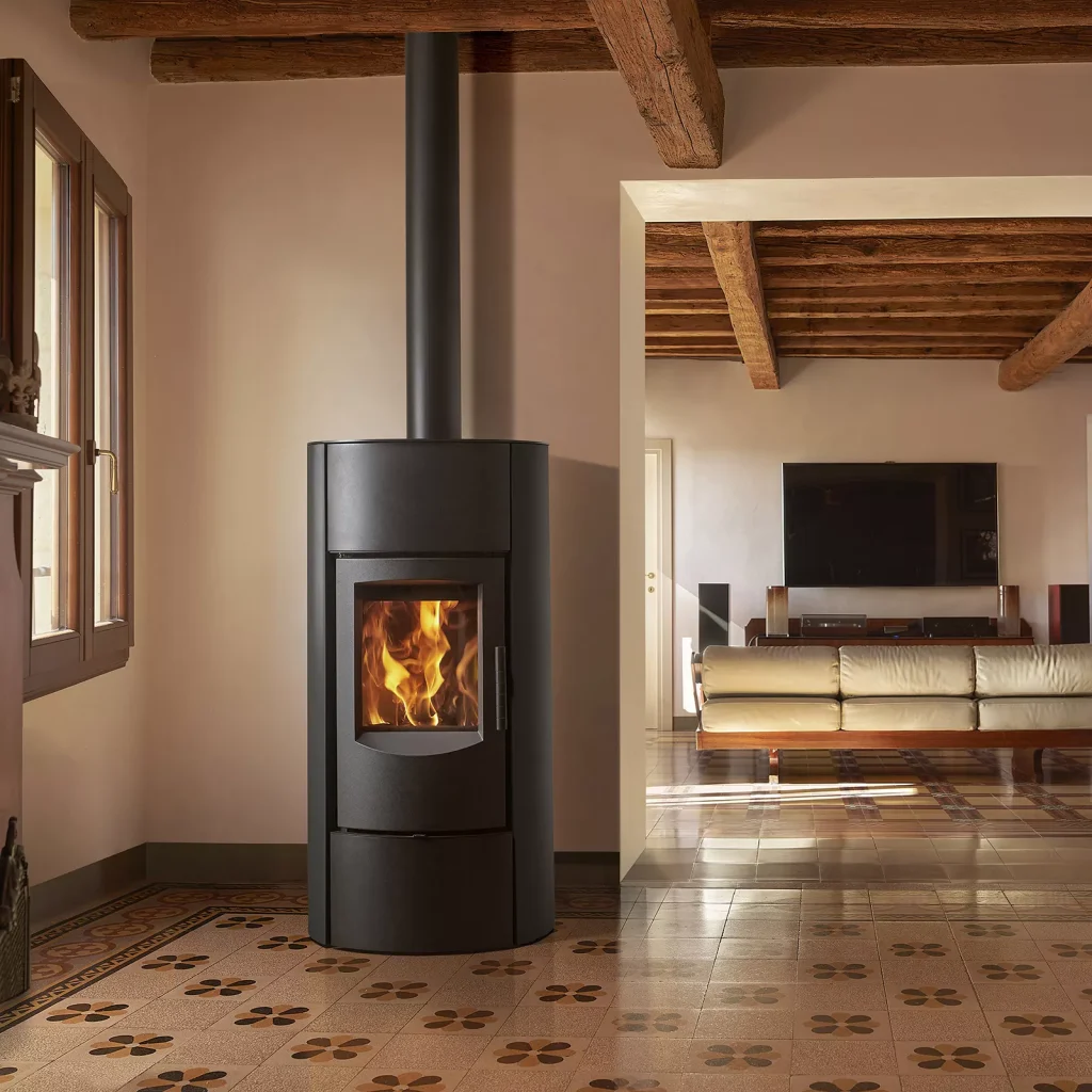 Le poêle à bois E530 séduit par son design simple et contemporain, qui met en avant des lignes sobres et équilibrées. Cette esthétique minimaliste lui permet de s’intégrer naturellement dans de nombreux styles d’intérieurs, qu’ils soient modernes, épurés ou plus traditionnels.