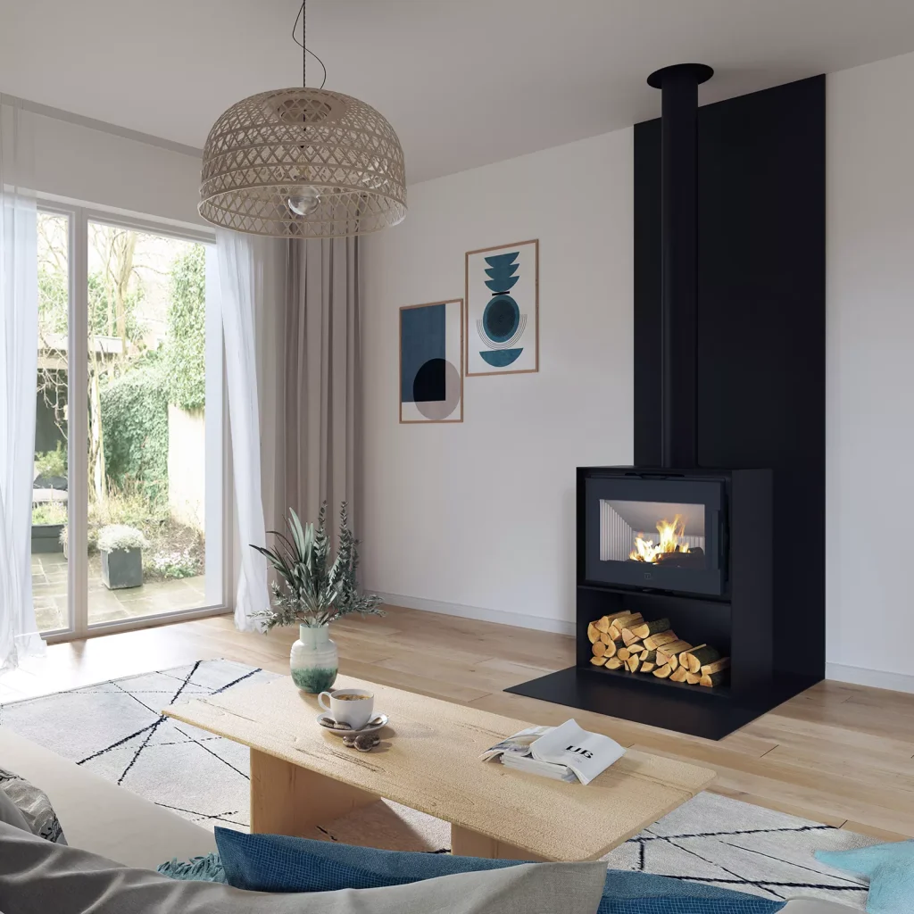 Le poêle à bois SELIO 60 de SEGUIN associe design contemporain et technologies performantes pour offrir une solution de chauffage à la fois esthétique et efficace. Conçu et fabriqué dans les ateliers SEGUIN, ce poêle en acier se distingue par son style épuré et minimaliste, qui met particulièrement en valeur la large vision panoramique des flammes, créant une ambiance chaleureuse et conviviale dans votre intérieur.