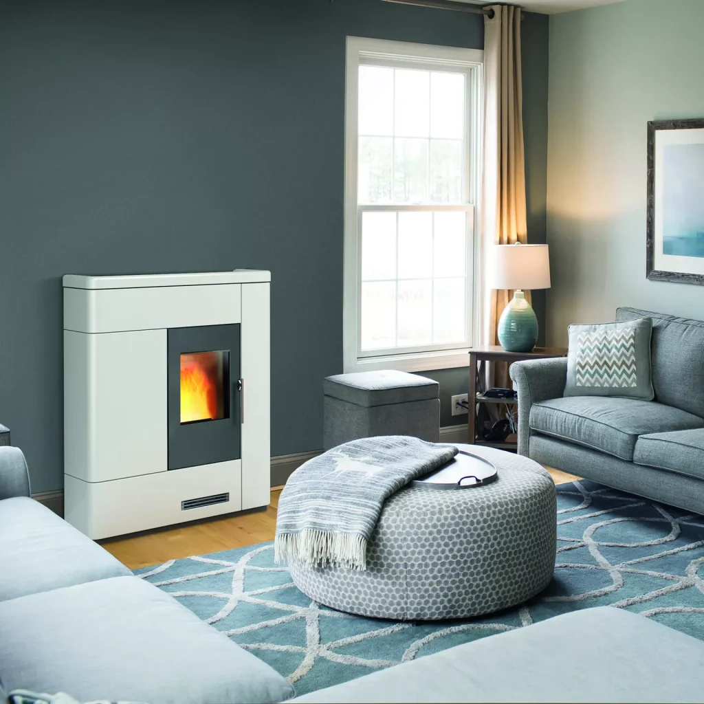 Le poêle à granulés PIAZZETTA P136 séduit par son design épuré, avec un habillage en acier et un plateau supérieur en céramique, qui lui permet de s’intégrer facilement dans tous les styles d’intérieur. Son panneau de commande numérique intuitif rend son utilisation simple et pratique au quotidien.