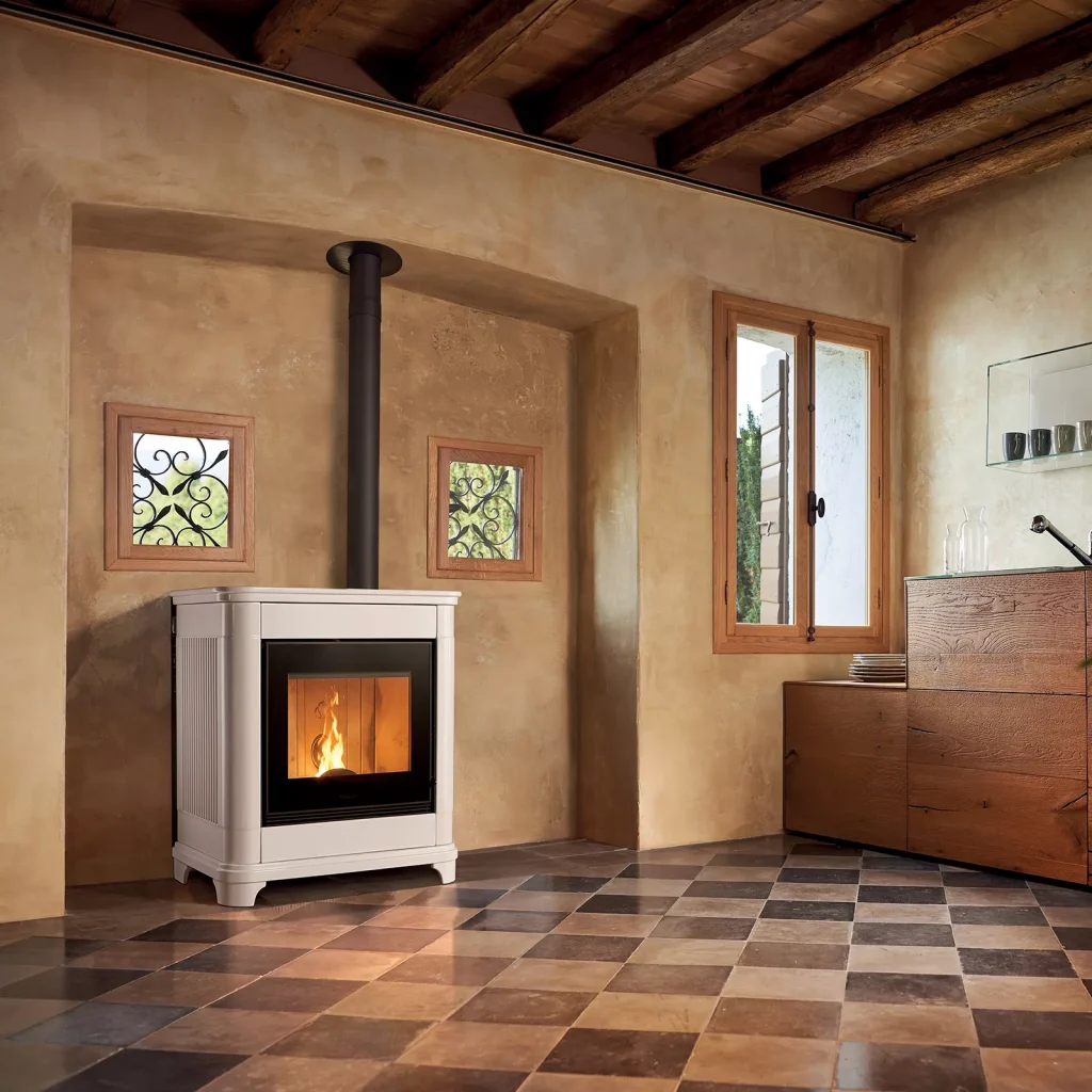 Le PIAZZETTA P945, modèle emblématique de la Premium Line, associe l’élégance de la céramique artisanale à des performances de chauffage avancées. Son design compact et sa faible hauteur lui permettent de s’intégrer facilement dans des espaces restreints ou dans un âtre existant.